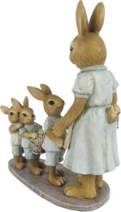 Clayre & Eef Beeld Konijn 25 Cm Bruin Blauw Kunststof Woonaccessoires Paashaas Pasen