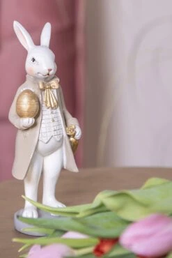 Clayre & Eef Beeld Konijn 17x15x53 Cm Wit Goudkleurig Polyresin Woonaccessoires Pasen Paashaas