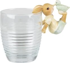 Clayre & Eef Beeld Konijn 5x4x11 Cm Beige Blauw Kunststof Woonaccessoires Beeld Decoratie Paashaas