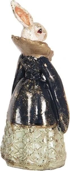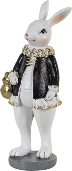 Clayre & Eef Beeld Konijn 7x7x20 Cm Zwart Wit Kunststof Woonaccessoires Paashaas Pasen