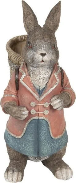 Clayre & Eef Beeld Konijn 26x19x48 Cm Bruin Blauw Kunststof Woonaccessoires Beeld Decoratie Paashaas