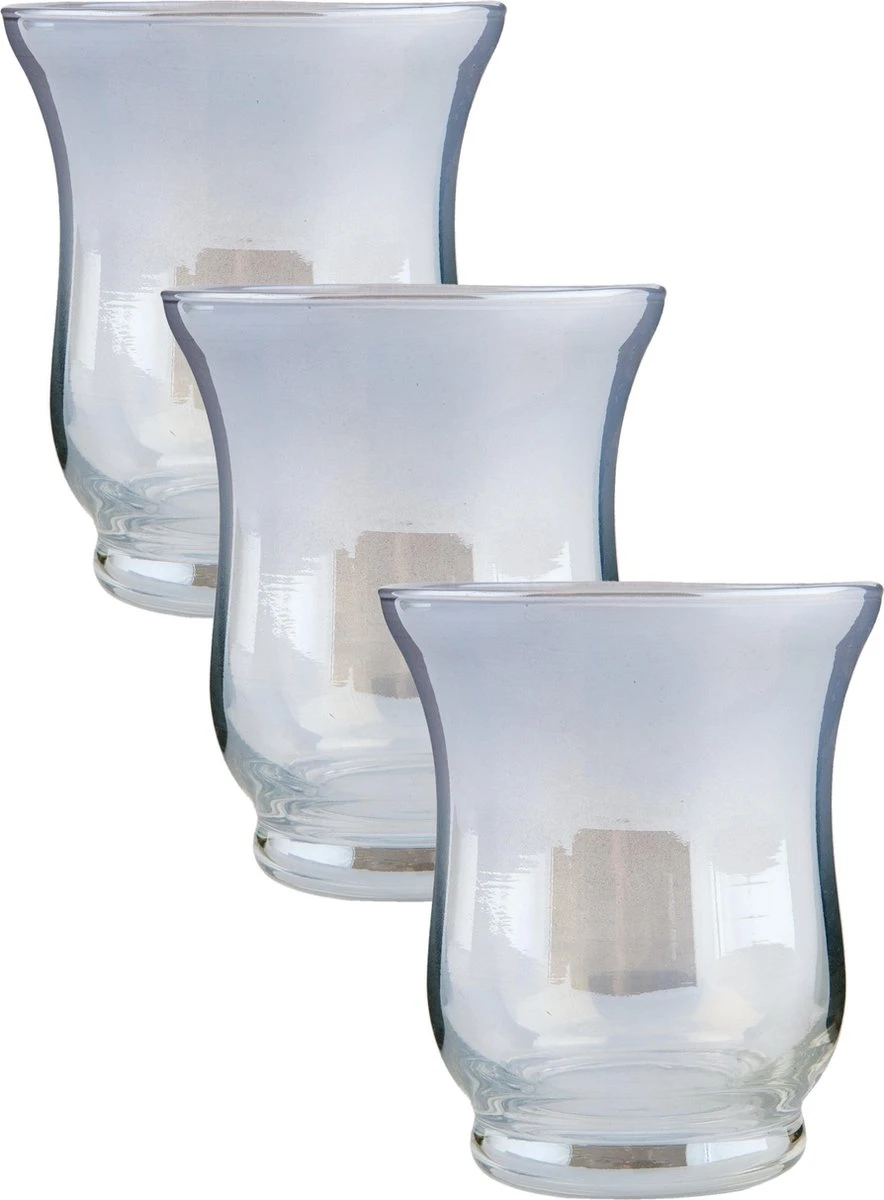 Clayre & Eef Blanke in kleurloverlopende glazen waxinelichthouder, van transparant naar parelmoer. 7×9 cm