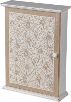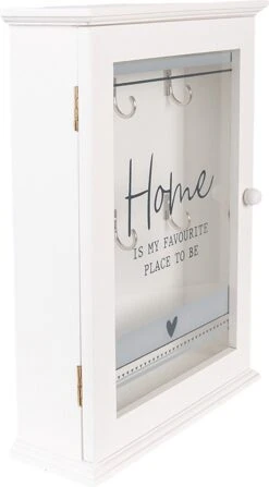 Clayre & Eef Sleutelkastje 25x7x31 Cm Wit Hout Glas Rechthoek Sleutelhouder Sleutelrekje