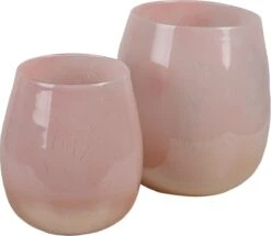 Clayre & Eef Theelichthouder Ø 11×12 Cm Roze Glas Waxinelichthouder Windlichthouder