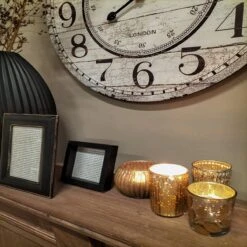 Clayre & Eef Theelichthouder Ø 6×9 Cm Zilverkleurig Glas Rond Waxinelichthouder Windlichthouder