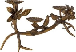 Clayre & Eef Kandelaar Vogels 50x25x21 Cm Koperkleurig Ijzer Bloemen Kaarsenstandaard Kaarsenhouder