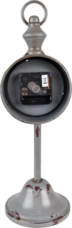 Clayre & Eef Tafelklok 13x6x27 Cm Grijs Metaal Rond Tafelklokken Binnen Staand Klokje Tafelklokje