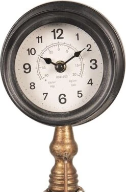Clayre & Eef Tafelklok 14x14x37 Cm Bruin Metaal Rond Tafelklokken Binnen Staand Klokje Tafelklokje
