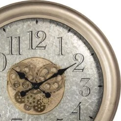 Clayre & Eef Wandklok Ø 67 Cm Zilverkleurig Goudkleurig Hout Ijzer Rond Muurklok Hangklok Keukenklok