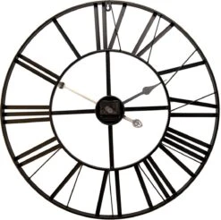 Clayre & Eef Wandklok Ø 64 Cm Zwart Goudkleurig Ijzer Glas Rond Muurklok Hangklok Keukenklok