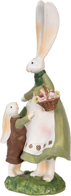 Clayre & Eef Beeld Konijn 10x7x25 Cm Groen Kunststof Woonaccessoires Paashaas Pasen