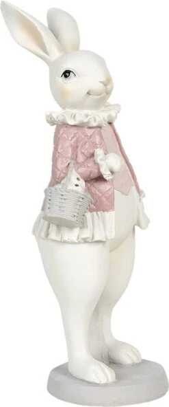 Clayre & Eef Beeld Konijn 10x10x25 Cm Wit Roze Polyresin Woonaccessoires Pasen Paashaas