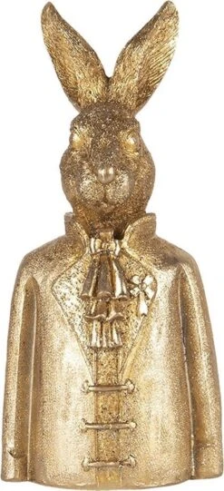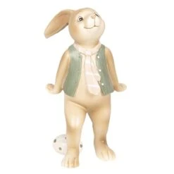Clayre & Eef Beeld Konijn 9x4x13 Cm Bruin Beige Kunststof Woonaccessoires Pasen Paashaas