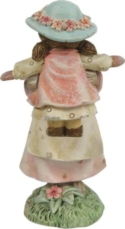 Clayre & Eef Beeld Konijn 8x5x12 Cm Bruin Roze Kunststof Woonaccessoires Paashaas Pasen