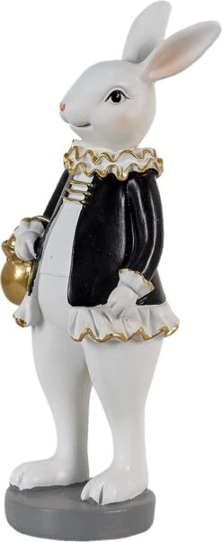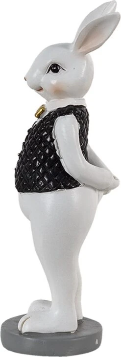 Clayre & Eef Beeld Konijn 7x7x20 Cm Zwart Wit Kunststof Woonaccessoires Paashaas Pasen