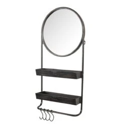 Clayre & Eef Spiegel 42×100 Cm Bruin Ijzer Hout Rond Grote Spiegel Wand Spiegel Muur Spiegel