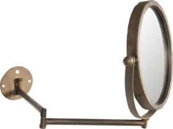 Clayre & Eef Spiegel 37×32 Cm Koperkleurig Ijzer Hout Rond Grote Spiegel Wand Spiegel Muur Spiegel