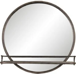 Clayre & Eef Spiegel 60×60 Cm Bruin Hout Metaal Rond Grote Spiegel Wand Spiegel Muur Spiegel