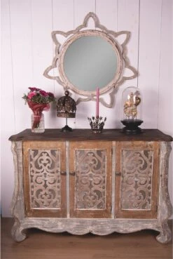 Clayre & Eef Spiegel 63×102 Cm Beige Ijzer Hout Rechthoek Grote Spiegel Wand Spiegel Muur Spiegel